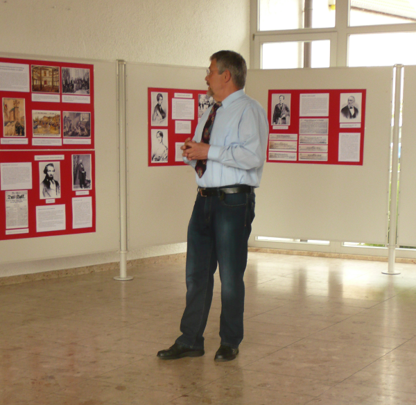 Am 21.05.2013 wurde in einem Kreis interessierter Gäste und Genossen die Ausstellung anlässlich "150 Jahre Sozialdemokratie" eröffnet. In ihrer Begrüßungsrede wies die Vorsitzende Ruth Breyer daraufhin, dass es dank des besonderen Engagements von Gernot Scior möglich ist, Näheres zu der Gründungsphase des Allgemeinen Deutschen Arbeitervereins durch Ferdinand Lassalle in Bildern und Text zu erfahren. Gernot Scior gab weitere Einblicke in die geschichtliche Entwicklung zu dieser Zeit, insbesondere zu: was hat Ferdinand Lassalle mit Darmstadt und mit Georg Büchner zu tun? Dies und anderes können Sie am 23.05.2013 bei unserer Feier erfahren, die Ausstellung selbst ist noch bis zum 24.05.2013 zu den Öffnungszeiten der Gemeinde zu sehen.